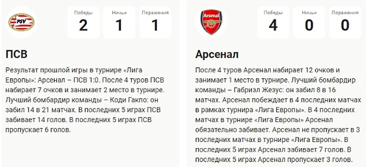 ПСВ — Арсенал 27.10.2022 Лига Европы, прогноз на футбольный матч
