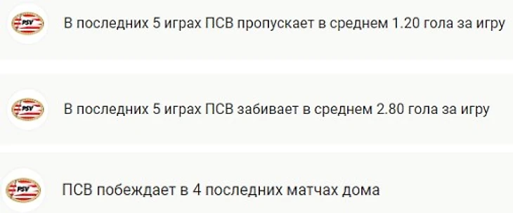 Для полноты прогноза обозначим статистические тенденции выступления ПСВ в нынешнем сезоне: