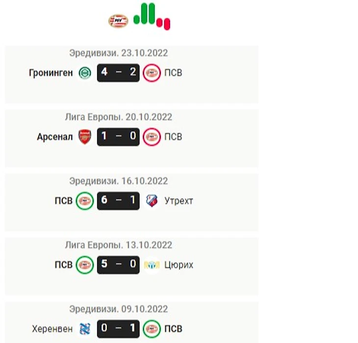 Предыдущие пять матчей ПСВ отыграл следующим образом: