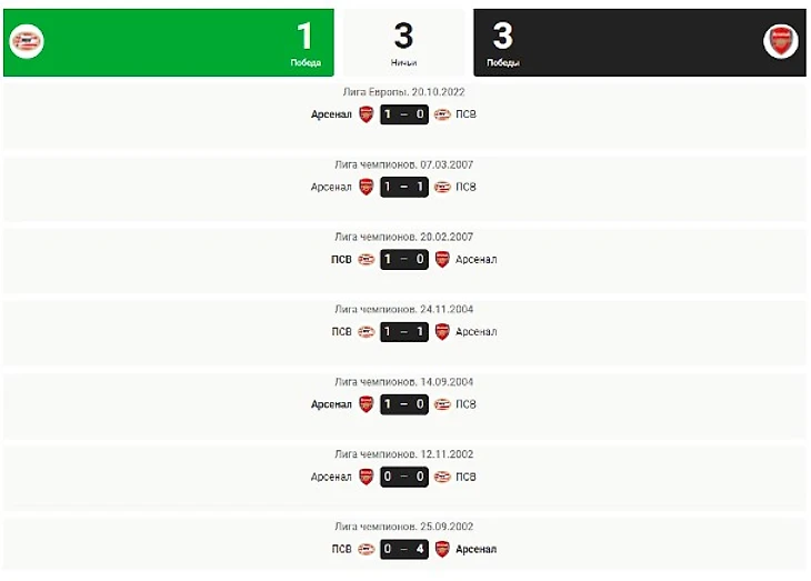 Что касается очных встреч команд, то всего они играли семь раз. Арсенал трижды выигрывал, и три раза сыграл вничью Приводим результаты личных встреч команд: