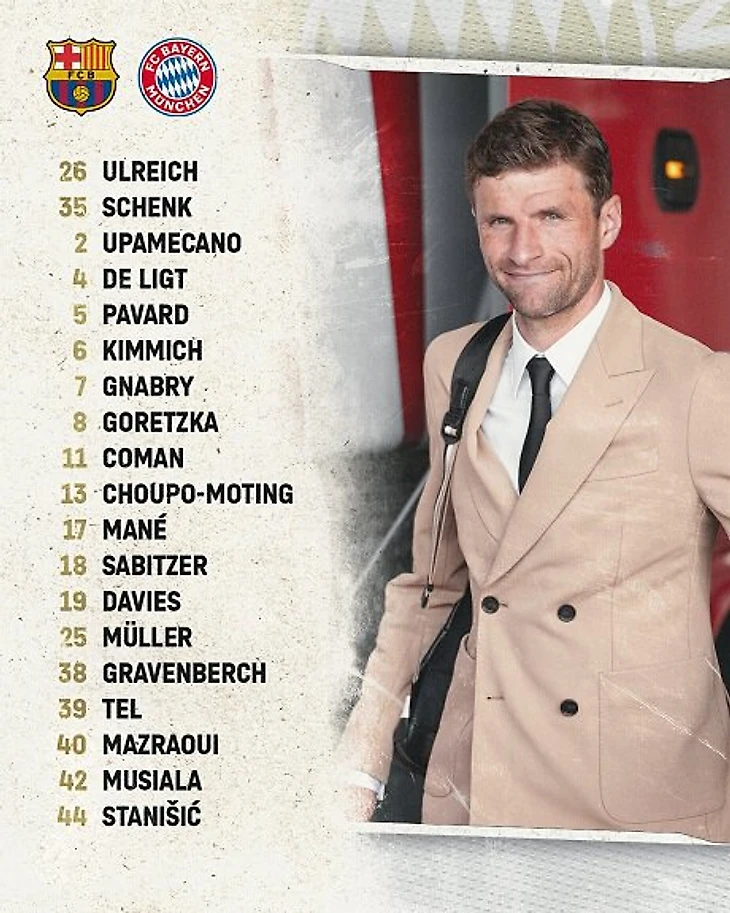 В заявку мюнхенецв на гостевой матч 5-го тура группового этапа не попали вратарь Мануэль Нойер, защитник Люка Эрнандес и атакующий полузащитник Лерой Сане.