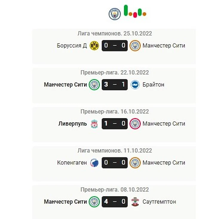 Несмотря не решенную задачу в последних двух турах, удивляет, что подопечные Гвардиолы ни разу не забили — до ничьи с «Копенгагеном» у «Сити» было шесть подряд побед с общим счетом 24:4.