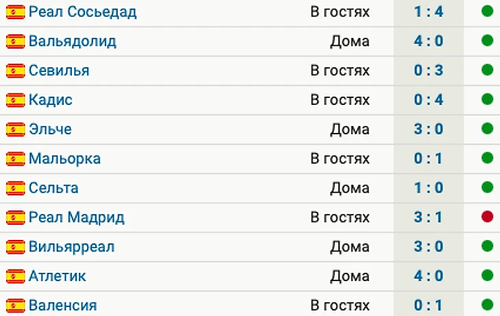 Десятой стала победа над «Валенсией» – 1:0. Единственное поражение за этот отрезок от «Реала».