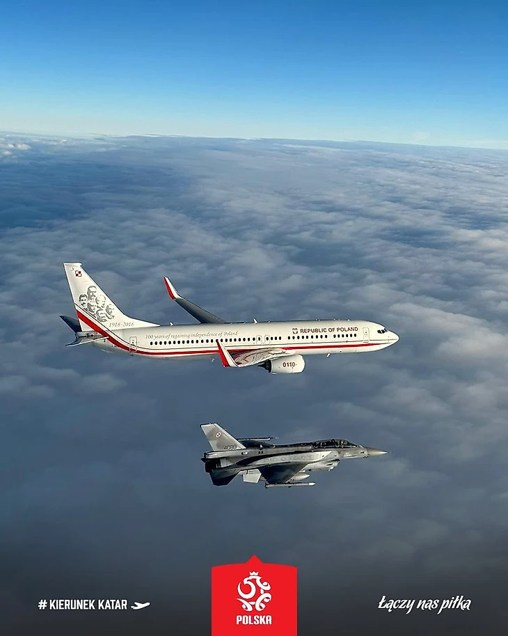 Сборная Польши вылетала в Катар на ЧМ-2022 в сопровождении истребителей F16.