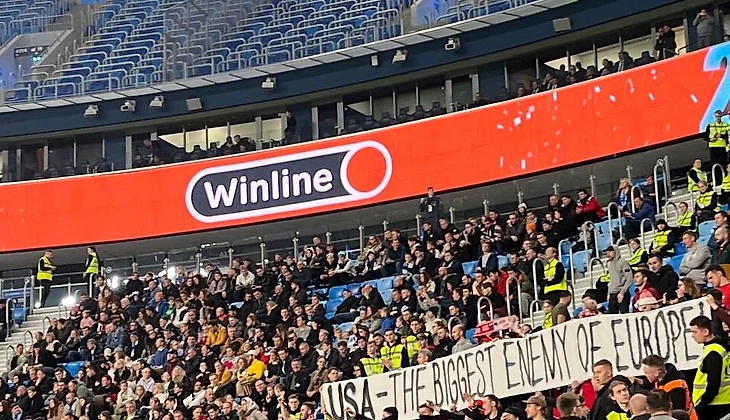 На секторе фанатов московского и сербского клубов вывесили баннер с надписью USA – The biggest enemy of Europe! («США – главный враг Европы!» – прим. Sports.ru).