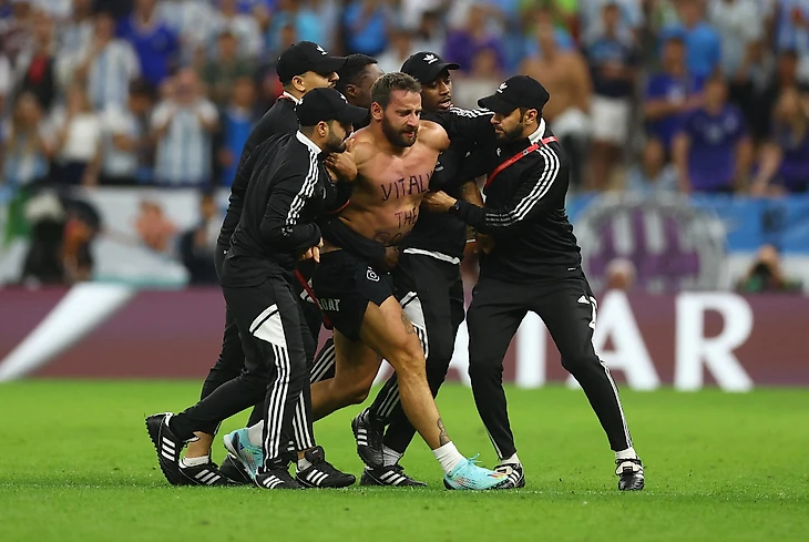 Болельщик выбежал на поле в матче ЧМ-2022 между Аргентиной и Нидерландами.