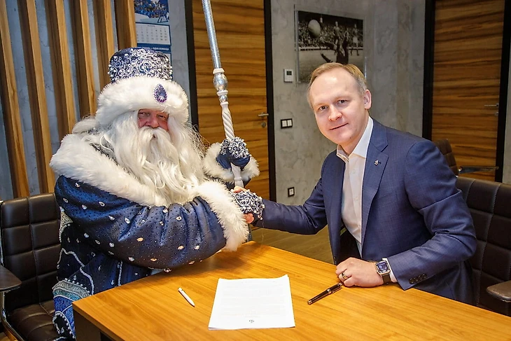 «Мы долго вели переговоры с Дедом Морозом и в итоге пришли к общему соглашению. На наш взгляд, контракт на сто лет – оптимальный срок, который позволит нашему амбассадору добрых дел творить чудеса для болельщиков «Динамо» в течение ближайшего века!