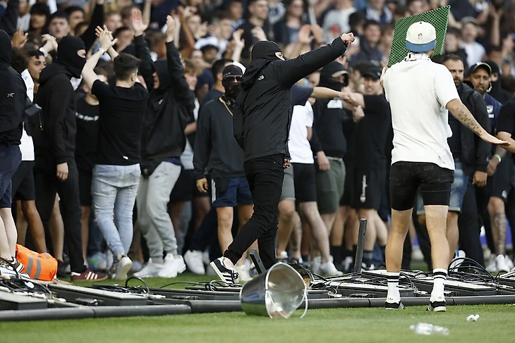 После этого болельщики выбежали на поле, один из них ударил Гловера по голове металлическим ведром, в котором тушат файеры. У 24-летнего вратаря открылось кровотечение.