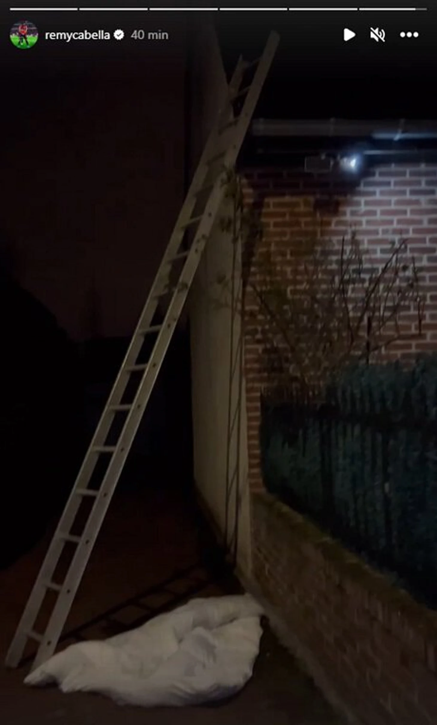 В сторис Кабелла опубликовал видеозаписи, на которых показал оставленную грабителями лестницу, ведущую на крышу первого этажа его дома.