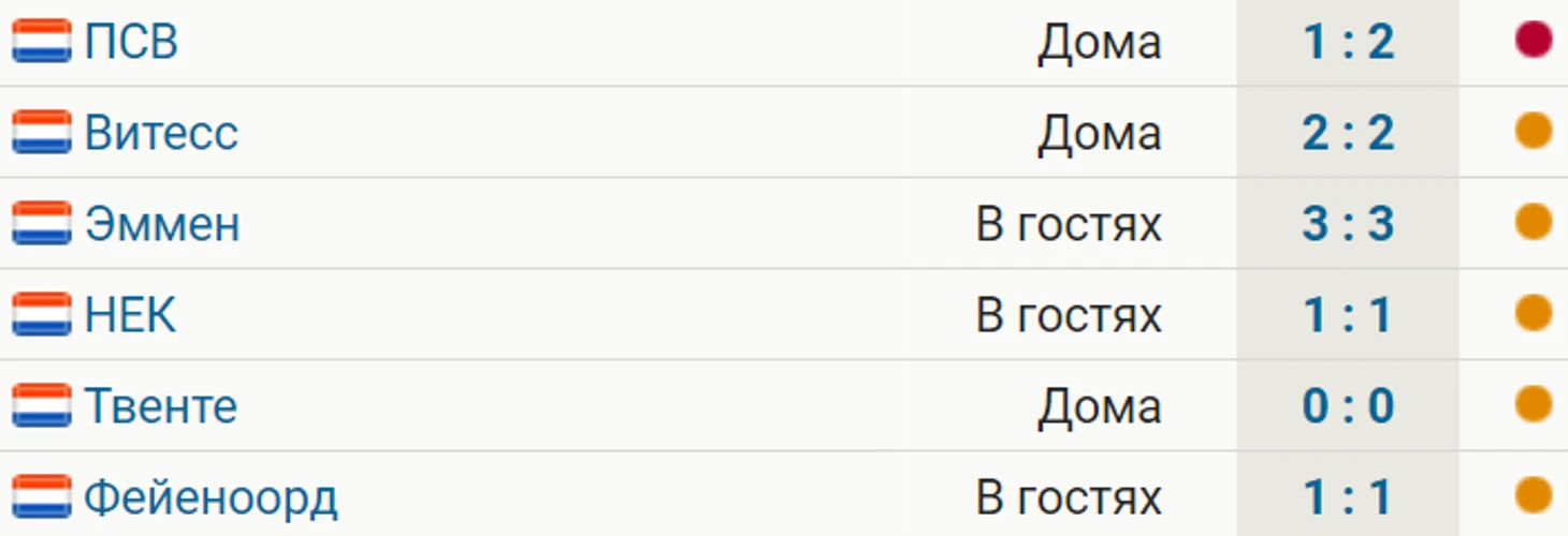 В последний раз амстердамцы выигрывали в Эредивизи 22 октября – у «Валвейка» (4:1). С тех пор у них одно поражение и пять ничьих. Шестиматчевых серий без побед в чемпионате у «Аякса» в XXI веке до этого дня еще не было.