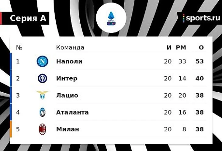 Неаполитанцы продолжают лидировать в таблице и теперь опережают «Интер» на 13 очков.