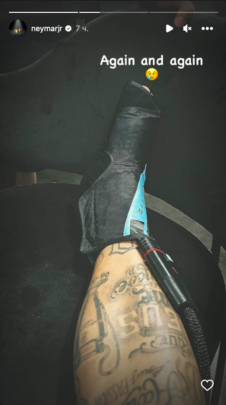 «Снова и снова 😢». Неймар выложил фото травмированной ноги