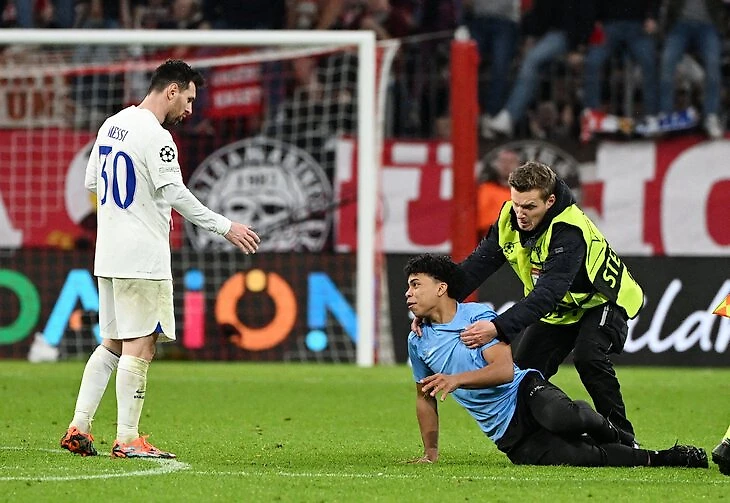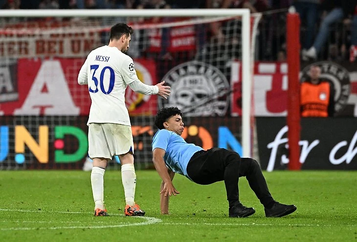 Сразу после финального свистка болельщик выбежал на поле «Альянц Арены» и устремился к нападающему «ПСЖ». Прямо около Месси фанат поскользнулся на газоне и упал. Благодаря этому болельщика скрутили стюарды. Все это происходило прямо у ног Месси.
