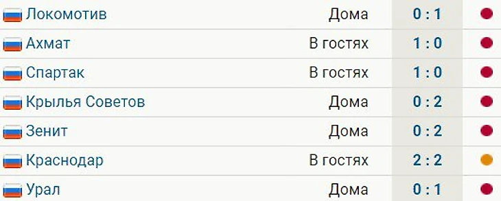 Москвичи при тренере Андрее Талалаеве проиграли 6 матчей в РПЛ, ни разу не забив. Также была ничья с «Краснодаром» (2:2).