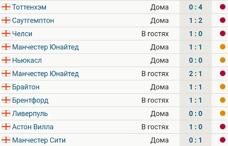 Таким образом, «Кристал Пэлас» не побеждает в 11 последних матчах во всех турнирах – у команды 6 поражений и 5 ничьих.