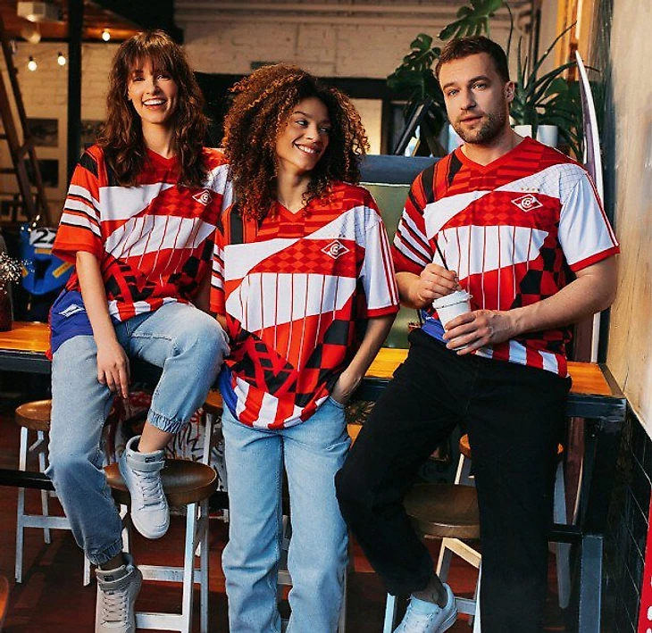 Дизайн майки состоит из фрагментов, каждый из которых напоминает о памятных комплектах формы за всю историю «Спартака» с 1922 года.