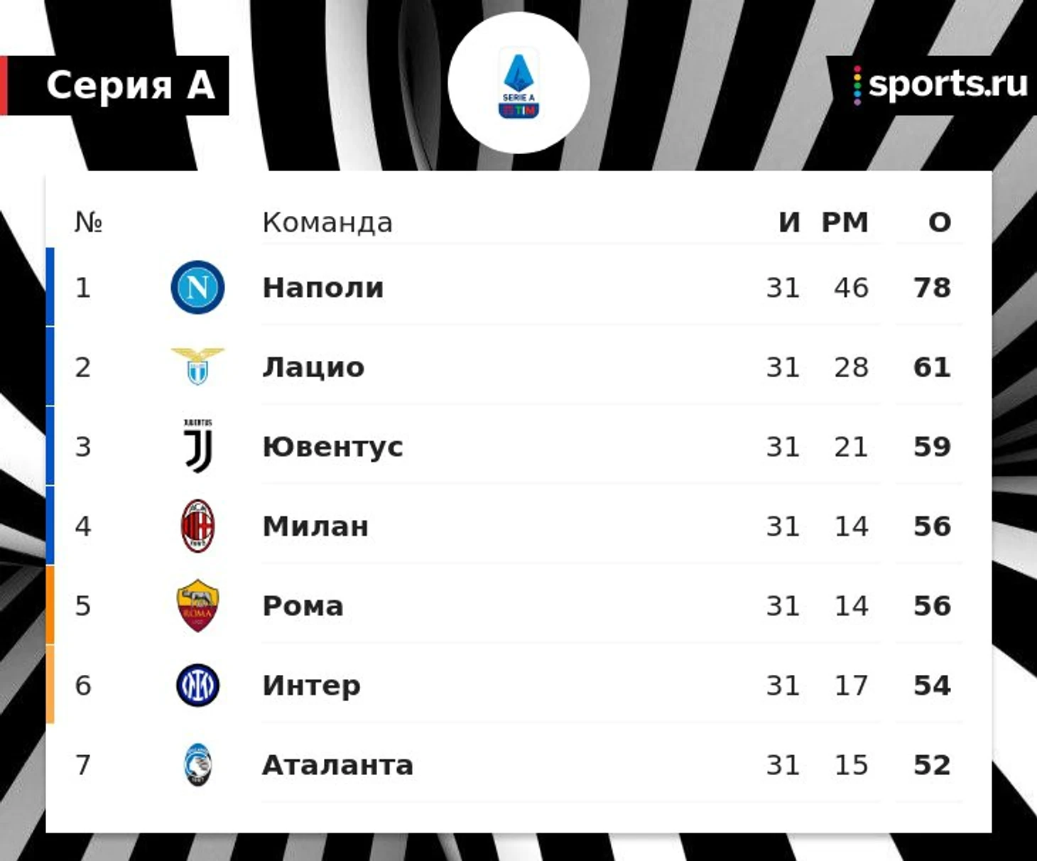 Благодаря дополнительным показателям их опередил «Милан», одержавший победу над «Лечче» (2:0). У команд по 56 очков, до идущего 3-м «Ювентуса» – 3 балла.