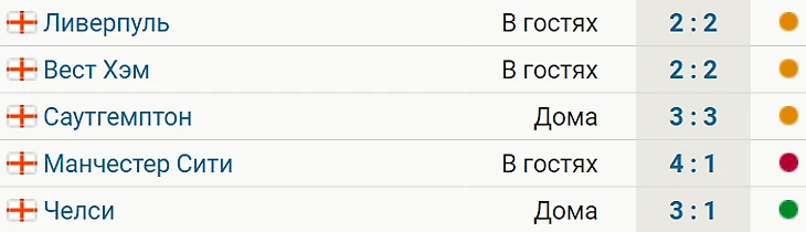 В последний раз до этого «канониры» выигрывали 1 апреля – у «Лидса» (4:1). С тех пор у них было 3 ничьих подряд и поражение.