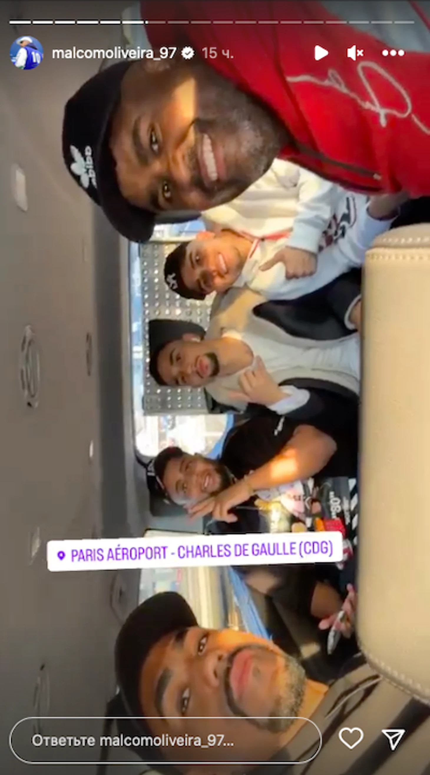 Бразилец опубликовал в сторис инстаграма с геометкой в аэропорту Парижа. Оттуда, вероятно, он вылетит в Бразилию.