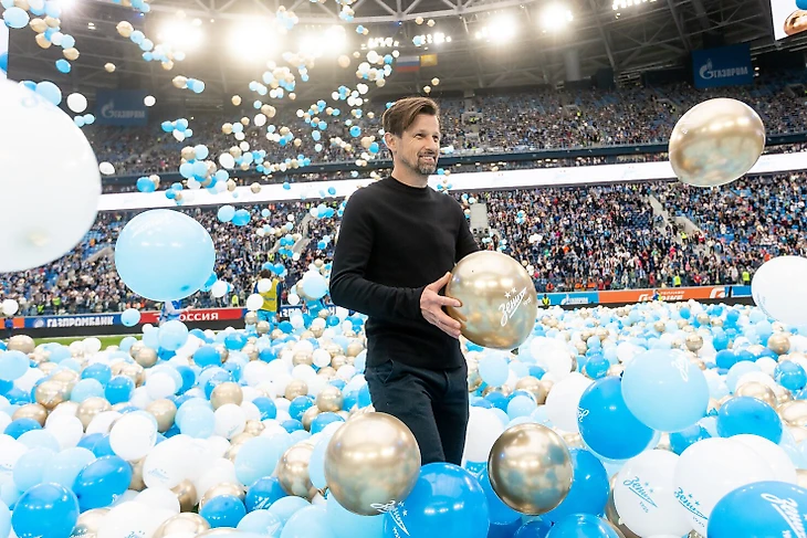 • 60 тысяч воздушных шаров опустились на поле «Зенита» после матча 30-го тура РПЛ. Клуб провел чемпионскую дискотеку в чаше «Газпром Арены»