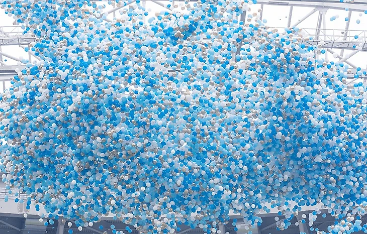 Кульминацией шоу стали 60 тысяч воздушных шаров (по числу мест на стадионе), которые опустились на поле с крыши домашнего стадиона сине-бело-голубых.