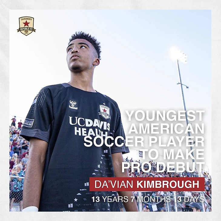 13-летний форвард «Сакраменто Репаблик» Да’виан Кимбро вышел на замену на 87-й минуте матча ЮСЛ (второй после МЛС американский дивизион по силе) против «Лас-Вегас Лайтс» (2:0).