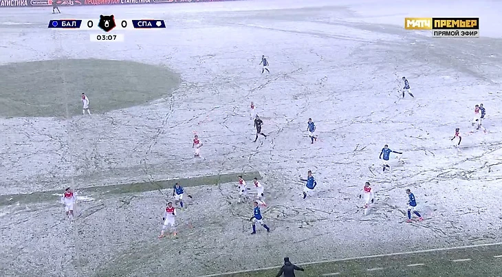 Матч 16-го тура Мир РПЛ «Балтика» – «Спартак» прерывался в начале первого тайма на несколько минут – поле очищали от снега. Перерыв в игре длился больше 25 минут – сотрудники стадиона «Калининград» снова убирали снег.
