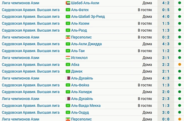 «Аль-Наср» не проигрывает 20 матчей подряд – 18 побед, 2 ничьих – в чемпионате, Кубке (две победы: над «Ухудом» – 5:1, «Аль-Иттифаком» – 1:0) и ЛЧ.