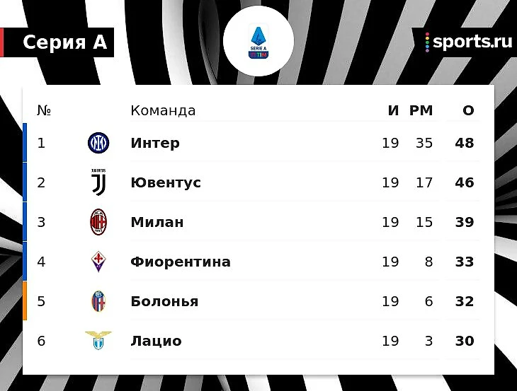 После 19 туров Серии А «бьянконери» набрали 46 очков и отстают от лидирующего «Интера» на два балла.