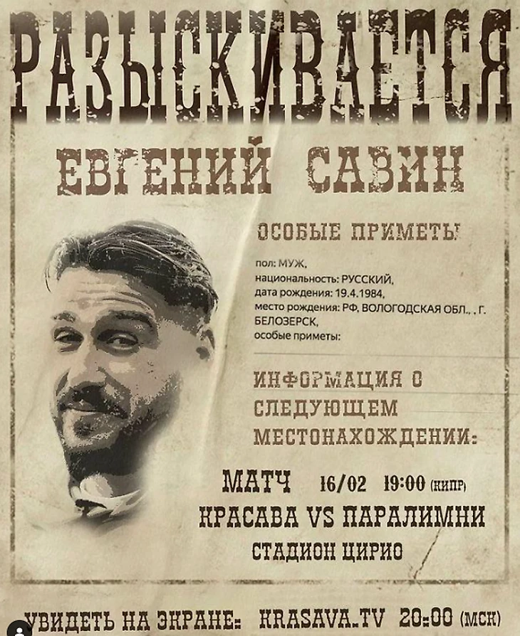 «Для сотрудников МВД вход свободный». Клуб объявленного в розыск Савина «Красава» пригласил болельщиков на матч с «Паралимни»