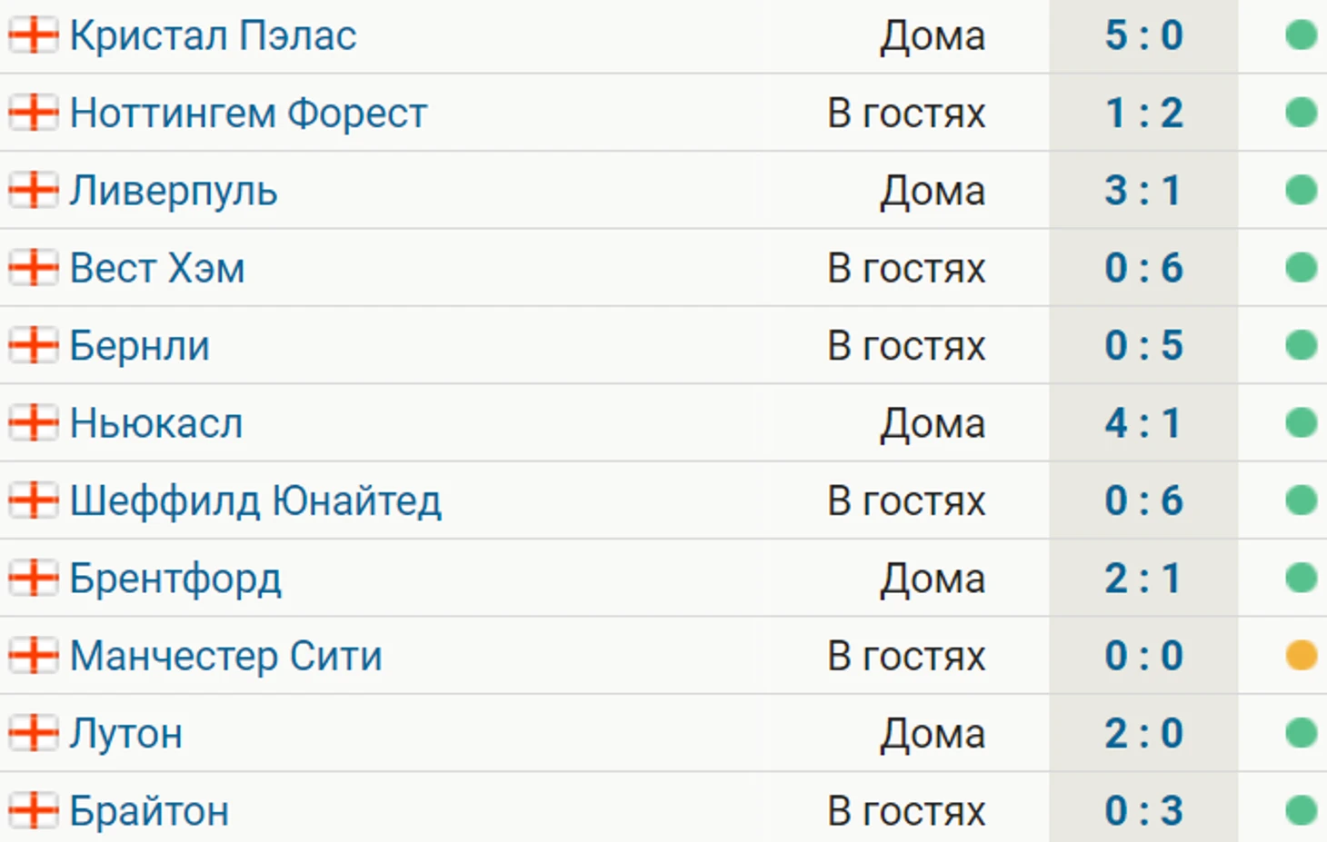 У «Арсенала» 10 побед с общим счетом 38:4 и ничья с «Ман Сити» в последних 11 матчах АПЛ