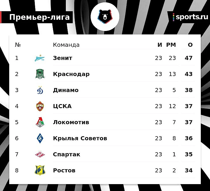 Это произошло после того, что «Крылья Советов» победили «Рубин» (2:0). В свою очередь, «Спартак» уступил «Сочи» (0:1) в этом туре.