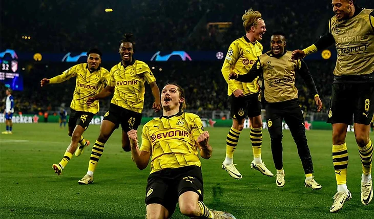 «Боруссия» выдала великий матч против «Атлетико», и это действительно великий матч. Проиграв в первом матче 1:2, в ответной встрече в течение 90 минут клуб под руководством Славенко Терзича по-настоящему бился за полуфинал. Они оформили дубль в первом тайме, забив дважды за 5 минут. Затем «индейцы» сравняли счет, но вот тогда и прорезался характер хозяев: дубль в течение трех минут выводит дортмундцев впервые с сезона 2012/2013 в полуфинал Лиги чемпионов. Диего Симеоне после игры признал, что дортмундцы победили по делу и абсолютно заслуженно.