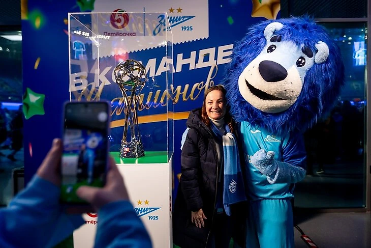 До игры с «Краснодаром» фанаты разглядывали Кубок Мир РПЛ, который «Зенит» взял 7 мая в матче со «Спартаком». В чаше выступал рэпер Macan.