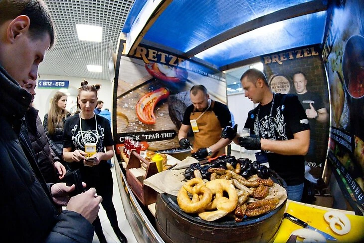 Болельщиков угощали уличной едой от примерно 40 петербургских проектов: например, бургерами, сэндвичами с пастрами, греческим гиросом, азиатским воком. Для тех, кто за ЗОЖ, приготовили фруктовые чипсы, свежевыжатые соки, смузи, орешки, вегетарианские и другие полезные блюда.