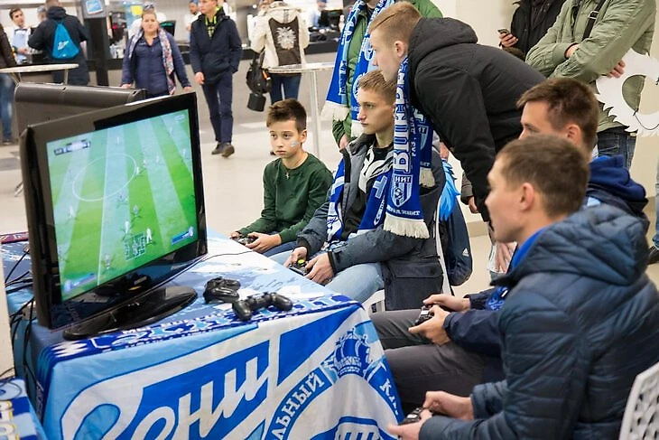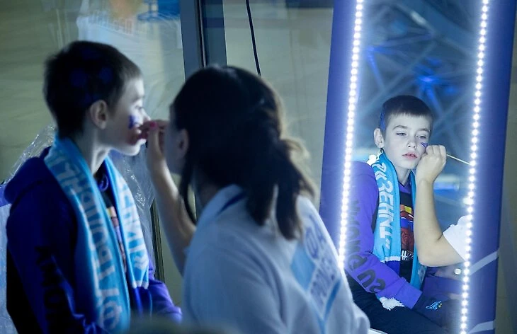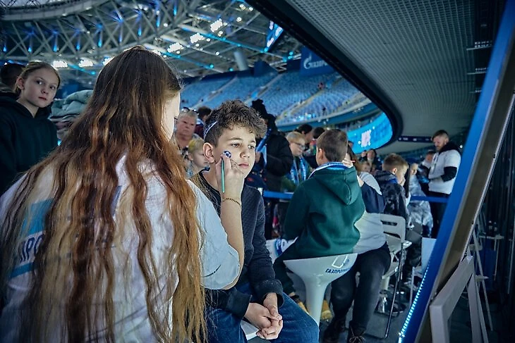 На «Фан-Променаде» есть базовые развлечения: перед тем, как попасть на трибуны, можно нарисовать баннер в поддержку команды, украсить себя аквагримом или зенитовской наклейкой. Работает барбершоп, где красят в сине-бело-голубые цвета, и даже салон красоты, где девушкам наносят уникальный макияж.