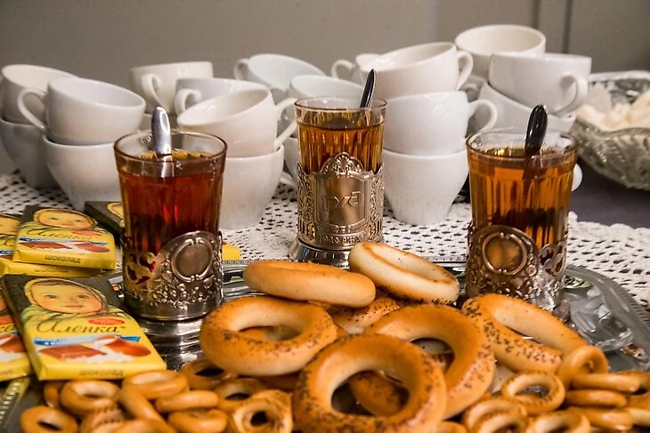 Еду оформили в зенитовском стиле, некоторые блюда посвятили игрокам команды. Палатки с едой установили в холле трибуны за воротами, они заняли несколько коридоров.