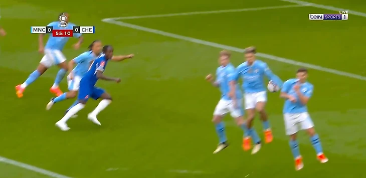 На 56-й минуте полузащитник лондонцев Коул Палмер исполнял штрафной удар, мяч попал в руку стоявшему в стенке Джеку Грилишу. Главный арбитр матча Майкл Оливер не назначил пенальти и не стал смотреть повтор, выслушав мнение видеоассистента.