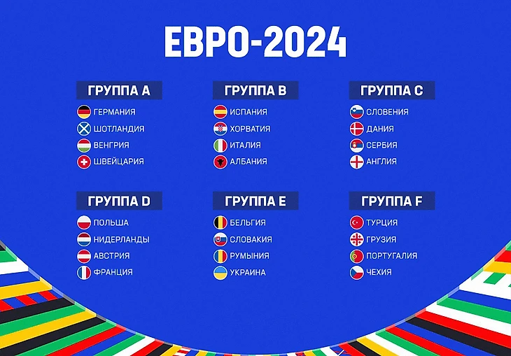 Все голы Евро Стадионы Евро 2024 Группы Евро 2024 Кто выиграет чемпионат Европы по футболу 2024 Прогноз на Евро-2024, фавориты, кто победит Расписание Евро-2024 на сегодня