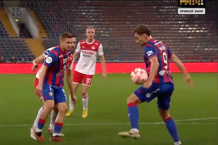 Судьи не назначили пенальти в пользу «Спартака» в 1-м тайме игры с ЦСКА.