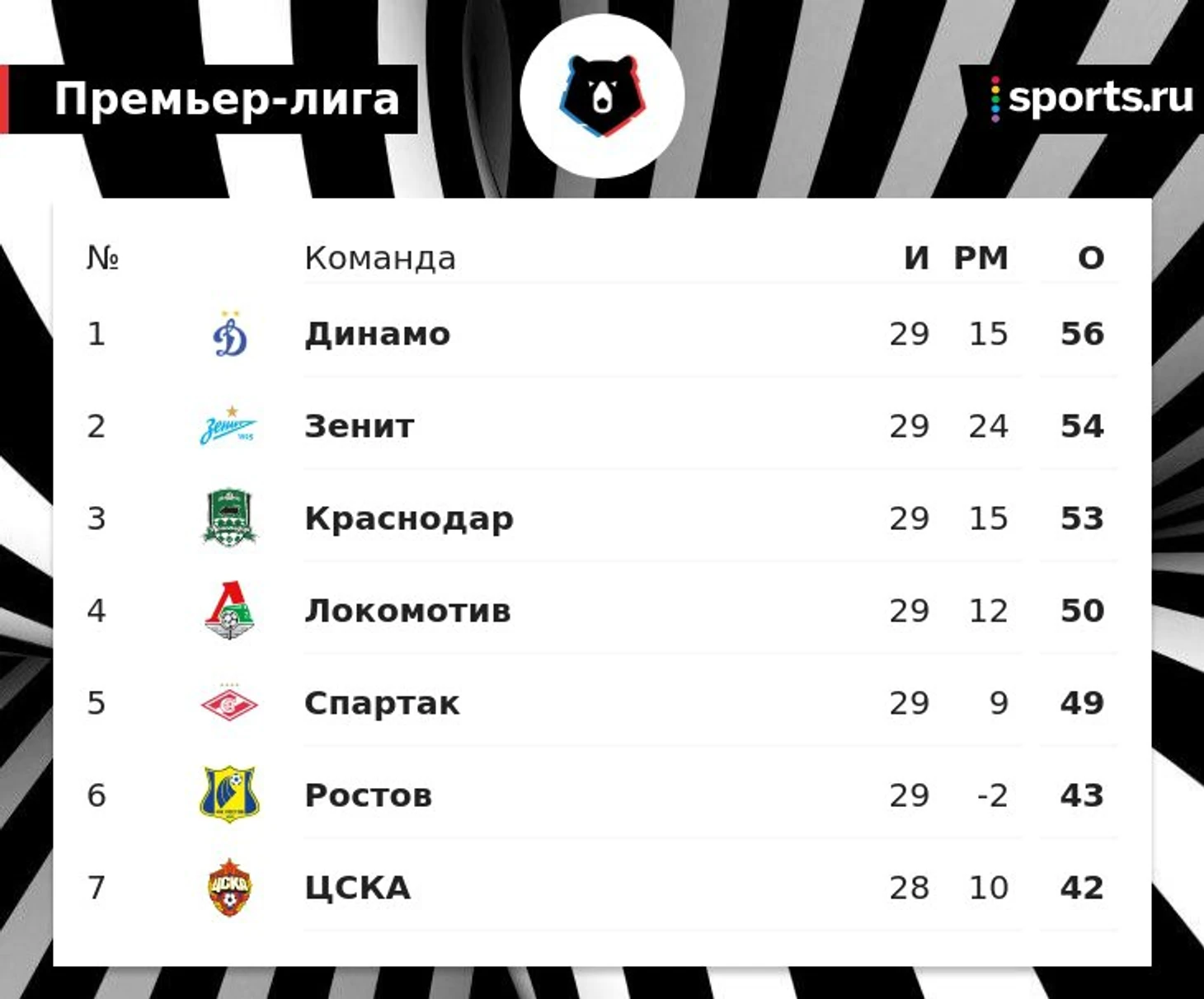 После победы «Зенита» над «Ахматом» (5:1) в результате которого сине-бело-голубые поднялись на 2-е место в таблице, отрыв «Спартака» от «Краснодара», оставшегося на 3-й строчке, составляет 4 очка.