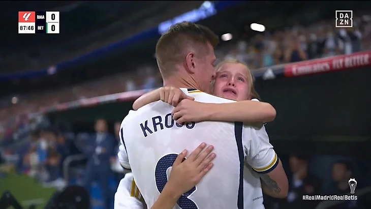 Кроос был заменен на 85-й минуте – сначала его на поле обняли товарищи по команде, в то время как болельщики скандировали его имя. После этого он подошел ко всем запасным игрокам, в этот момент на поле появились его дети.