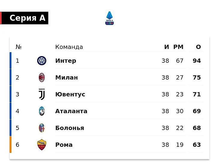 • «Ювентус» попал в топ-3 Серии А впервые с 2020 года. «Аталанта» финишировала 4-й, «Болонья» – 5-й