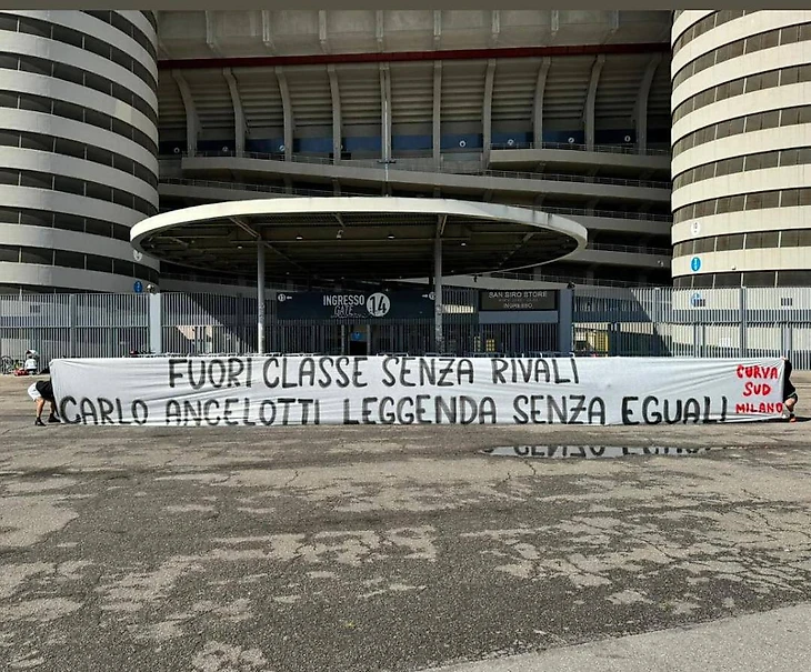 Ультрас «Милана» вывесили баннер в честь Анчелотти: «Чемпион, у которого нет соперников. Непревзойденная легенда»