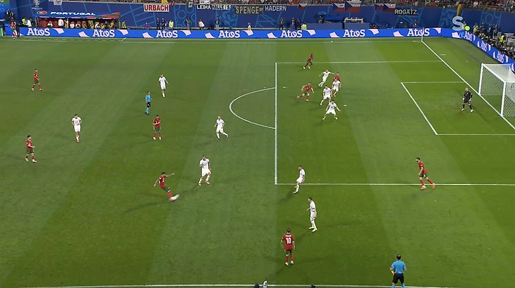 На 87-й минуте игры Криштиану Роналду попал в каркас ворот чешской команды, а Диогу Жота сыграл на добивании и забил гол.