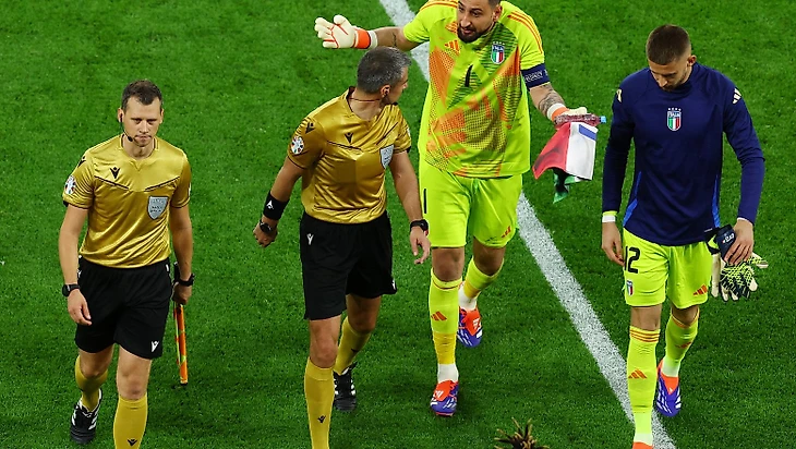Матч с Испанией итальянцы тоже начали плохо, позволив сопернику создать убойный момент уже на второй минуте. Однако с ударом Педри с линии вратарской головой справился Джанлуиджи Доннарумма, который в прыжке перевел мяч на угловой.