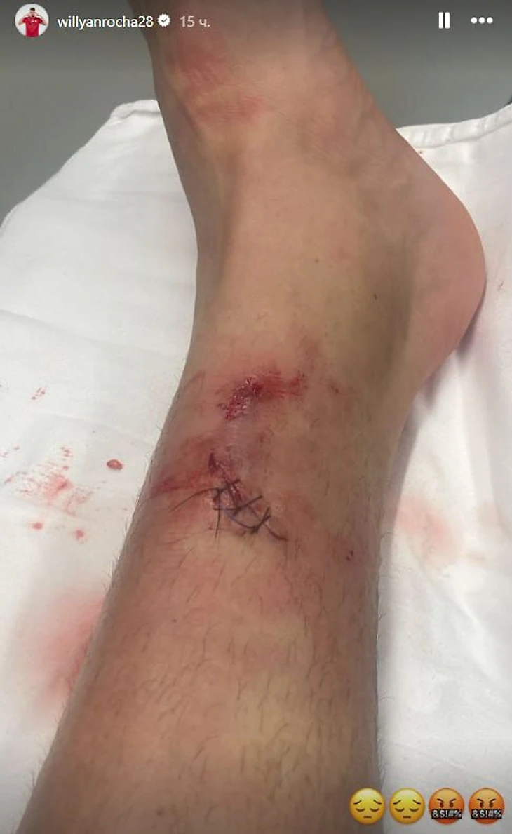 «😔😔🤬🤬». Роша показал травмированную ногу с наложенными швами после фола Сперцяна