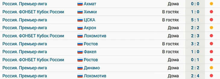 В следующих 10 матчах в РПЛ и Фонбет Кубке России команда 7 раз потерпела поражение и трижды сыграла вничью.