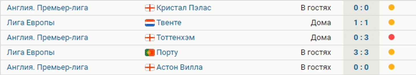 «Манчестер Юнайтед» не смог победить ни в одном из пяти последних матчей во всех турнирах. На их счету четыре ничьих (две в чемпионате Англии и две в Лиге Европы) и одно поражение – 0:3 от «Тоттенхэма» в Премьер-лиге.