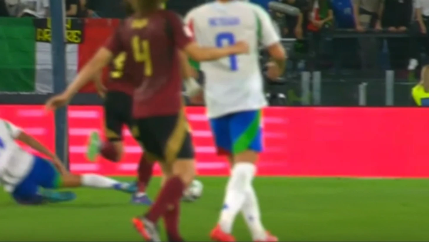 Главный судья матча Лиги наций норвежец Эспен Эскос показал итальянцу желтую карточку. Но в эпизод вмешался ВАР, и арбитр, посмотрев повтор, удалил Пеллегрини на 40-й минуте.